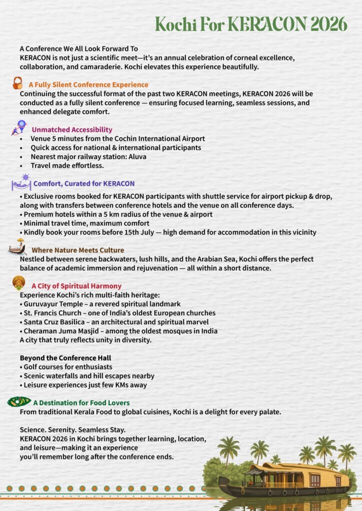 - Make Cheque / DD in favour of “Cornea Society of India – Keracon AC” payable at Bengaluru.