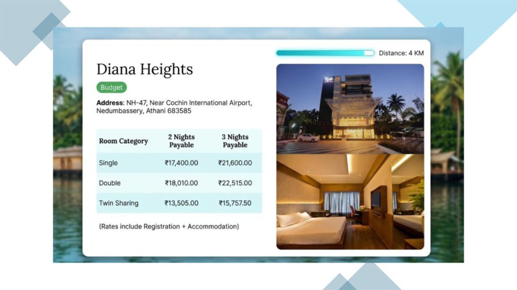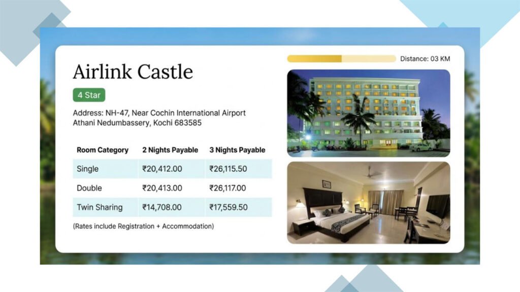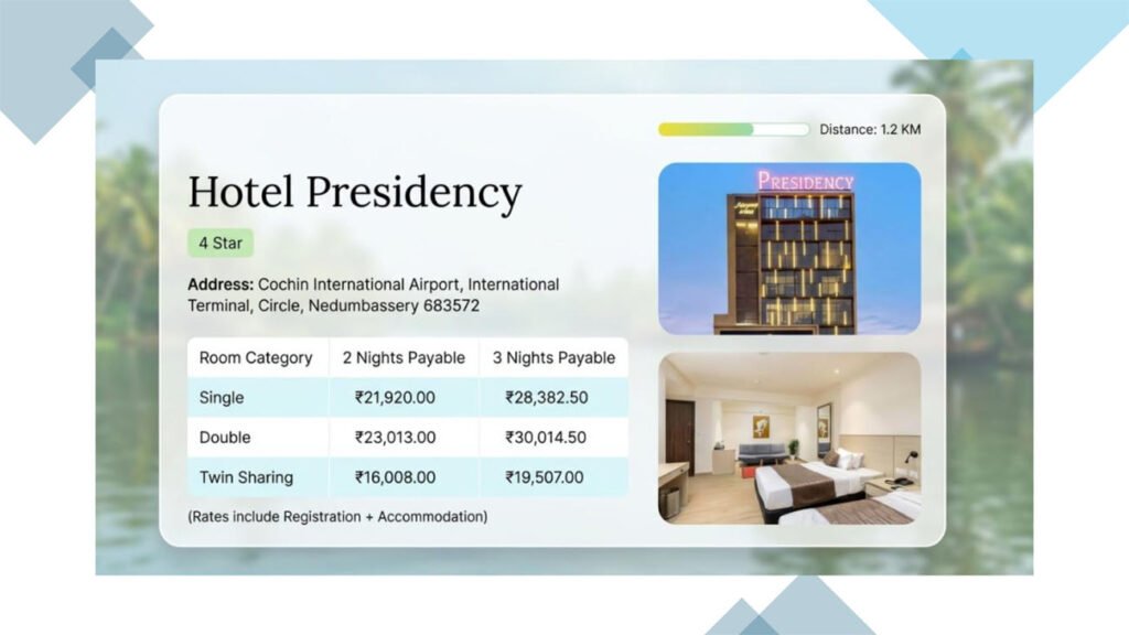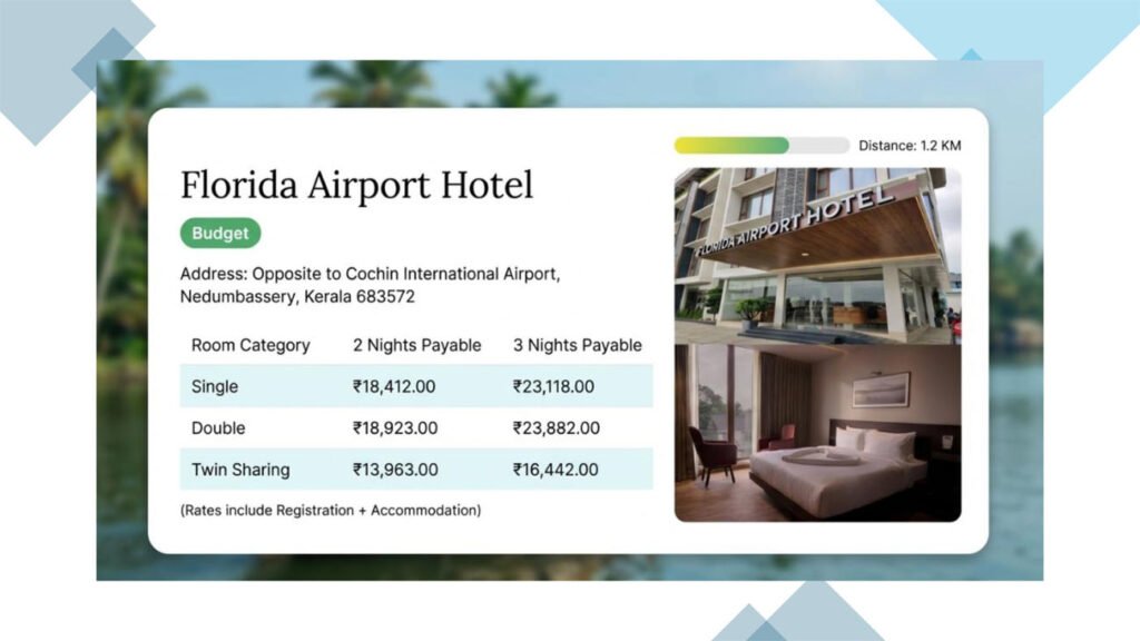 1. Official Hotel List – Within 2-5 km RadiusAll hotels shortlisted for KERACON 2026 accommodation are: